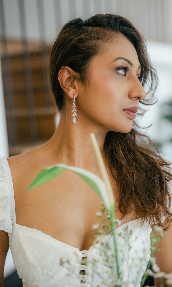 Elevate your bridal look with the Crystal Vine Earrings, featuring leaf-shaped designs adorned with sparkling cubic zirconia crystals for a graceful, eye-catching appeal. Perfect for weddings, engagements, bridal showers, or formal evening events, these long drop earrings combine delicate craftsmanship, elegant design, and statement-making charm. A must-have for women who love bridal jewelry, crystal statement earrings, and sophisticated wedding accessories.